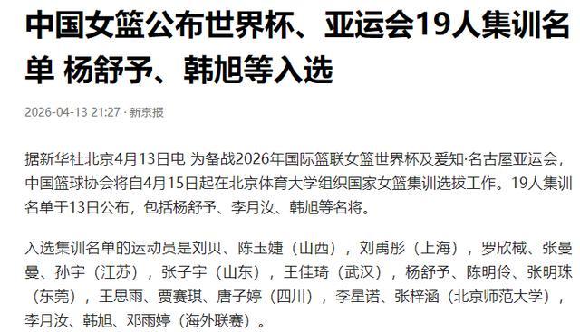 加上韩旭、李月汝、王思雨这些核心,19人名单直接集齐本土、大学生、海外三路人马。